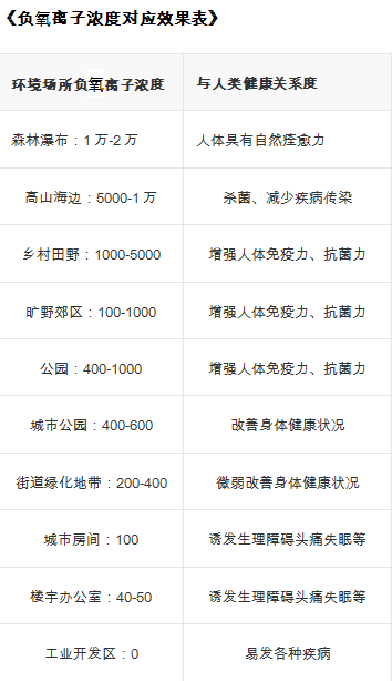 當負氧離子濃度達到每立方厘米10萬個以上時,