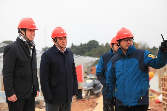 董事長(zhǎng)梁明寶、總經(jīng)理察看萬(wàn)安旭陽(yáng)項(xiàng)目現(xiàn)場(chǎng)