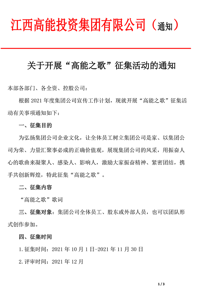 關于開展“高能之歌”征集活動的通知
