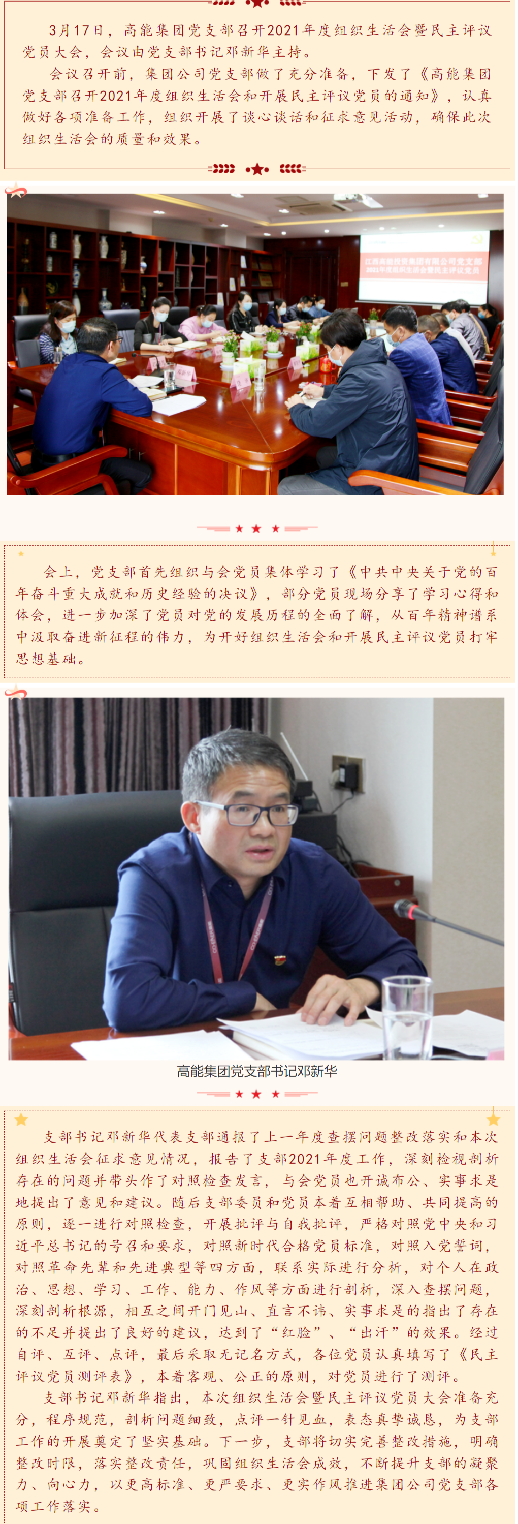 高能集團(tuán)黨支部召開2021年度組織生活會(huì)暨民主評(píng)議黨員大會(huì)