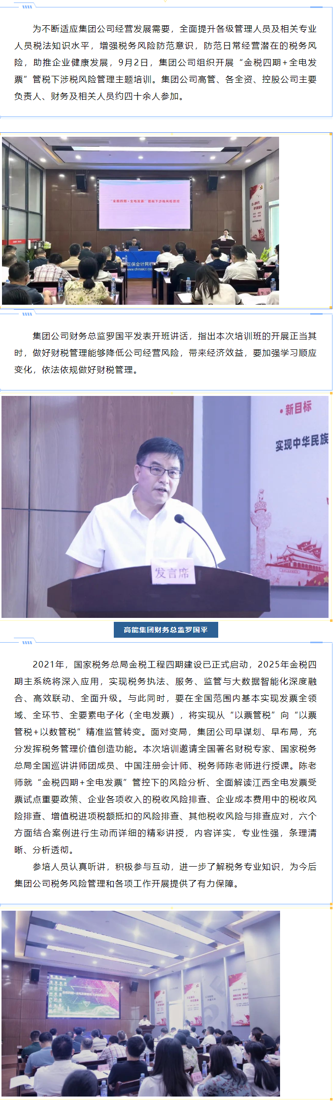 高能集團(tuán)開展“金稅四期+全電發(fā)票”管稅下涉稅風(fēng)險管理主題培訓(xùn)