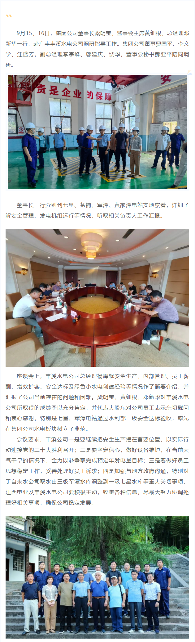 集團(tuán)公司董事長(zhǎng)梁明寶一行調(diào)研指導(dǎo)廣豐豐溪水電公司