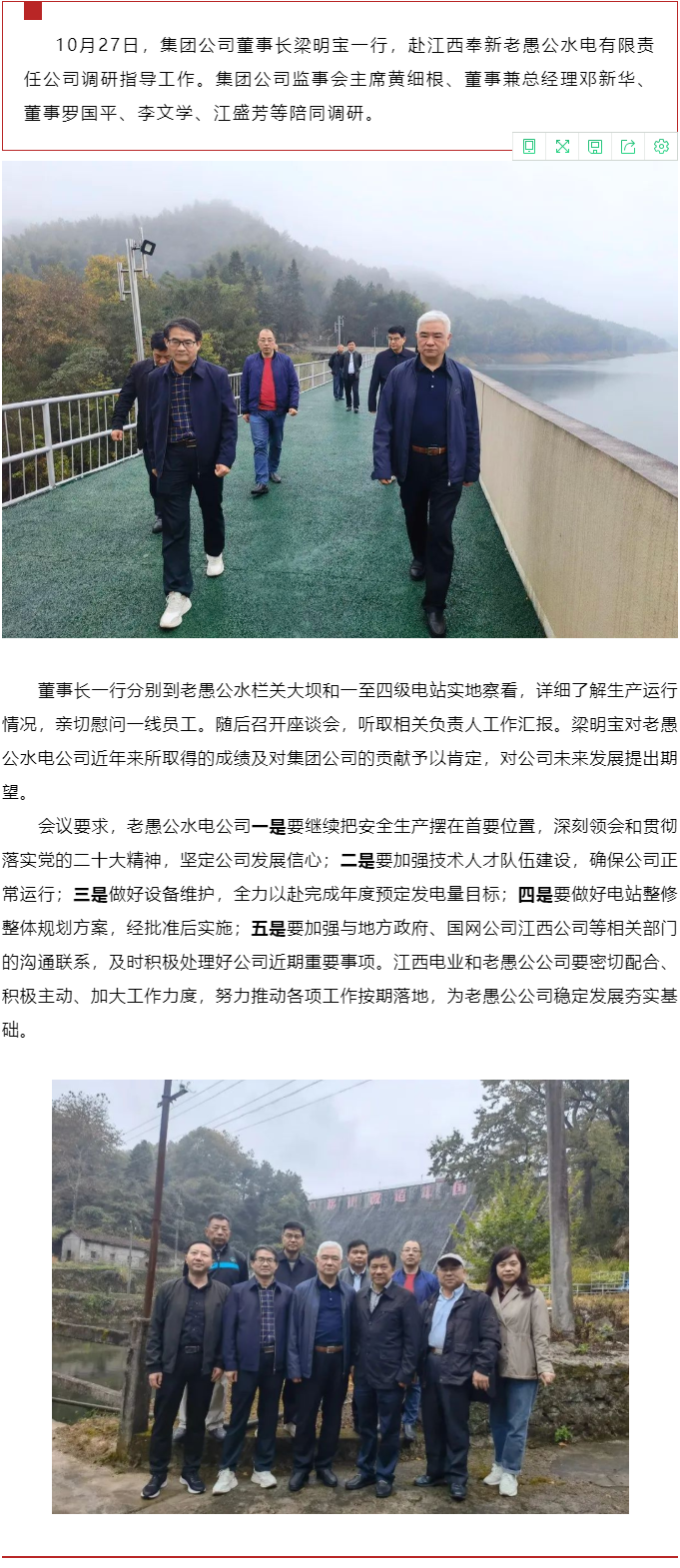集團公司董事長梁明寶一行調研指導奉新老愚公水電公司