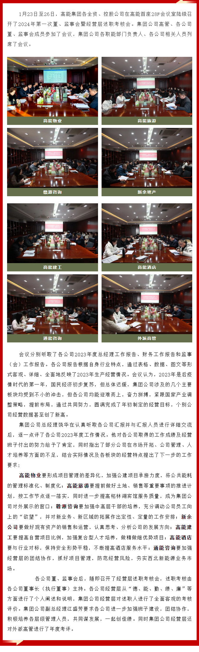 高能集團各全資、控股公司召開2023年度董、監(jiān)事會暨經(jīng)營層述職考核會