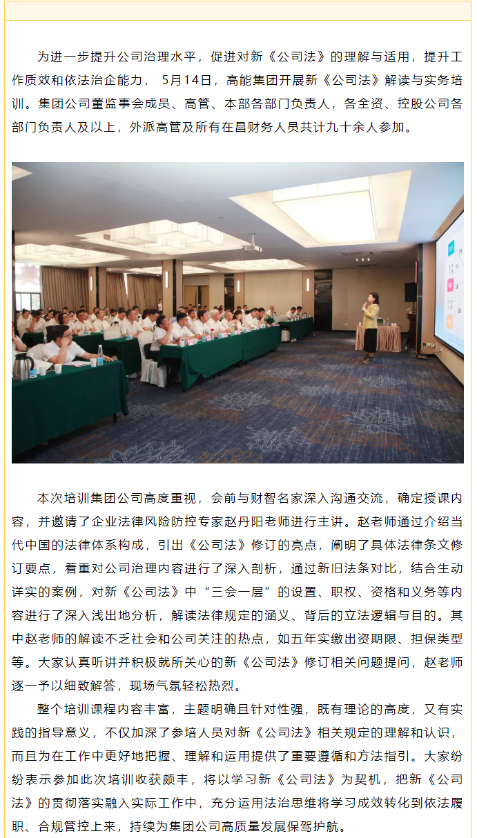高能集團開展新《公司法》專題知識培訓(xùn)
