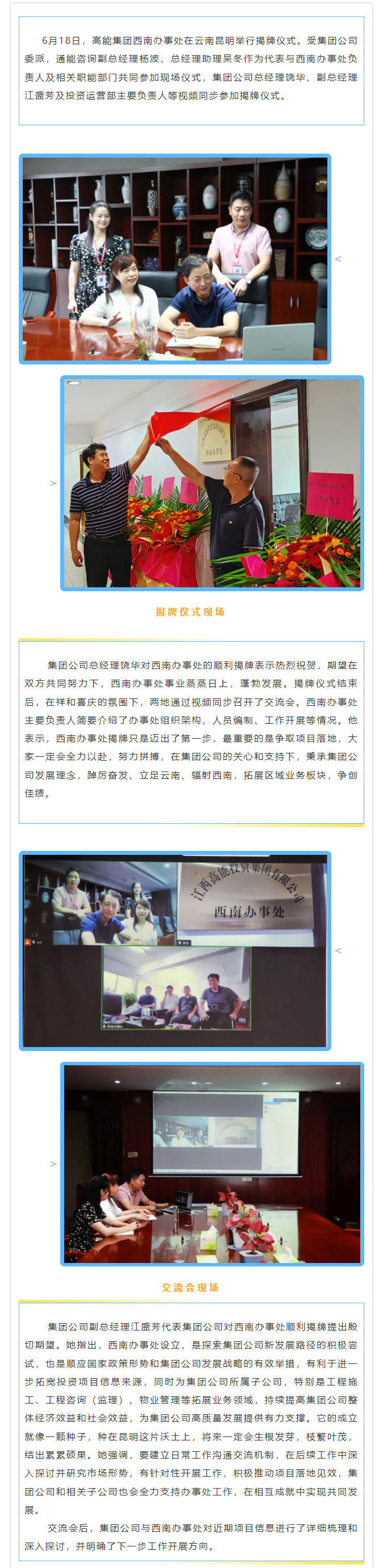 江西高能投資集團有限公司西南辦事處揭牌成立