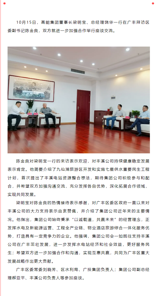 高能集團(tuán)董事長(zhǎng)梁明寶一行拜訪上饒市廣豐區(qū)委副書記陳金良