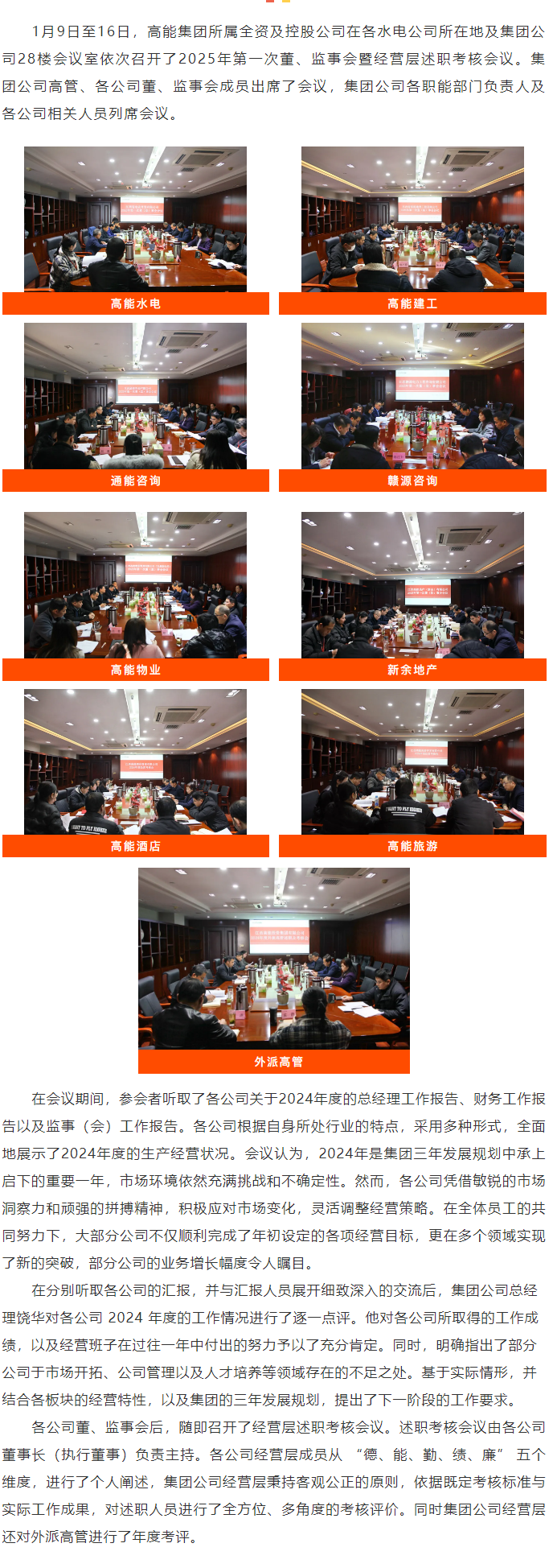 高能集團各全資、控股公司召開2024年度董、監(jiān)事會暨經(jīng)營層述職考核會