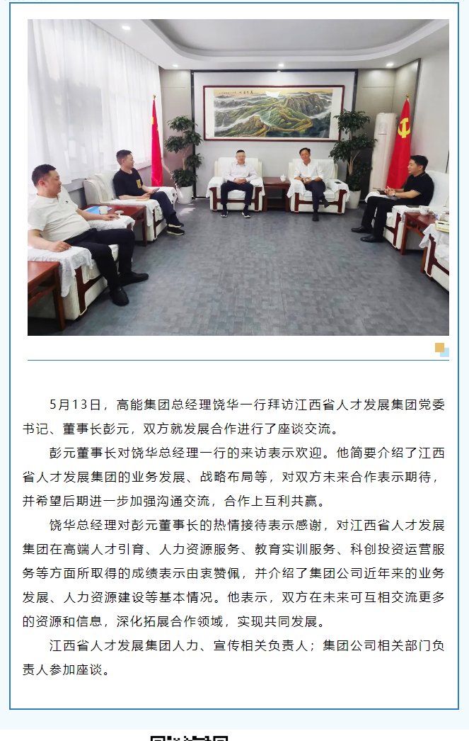 高能集團(tuán)總經(jīng)理饒華一行拜訪江西省人才發(fā)展集團(tuán)黨委書記、董事長彭元